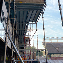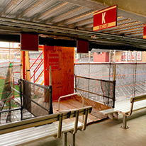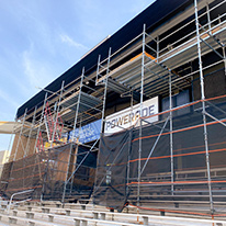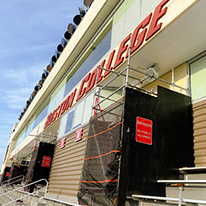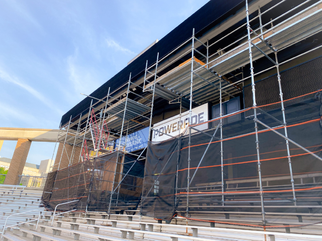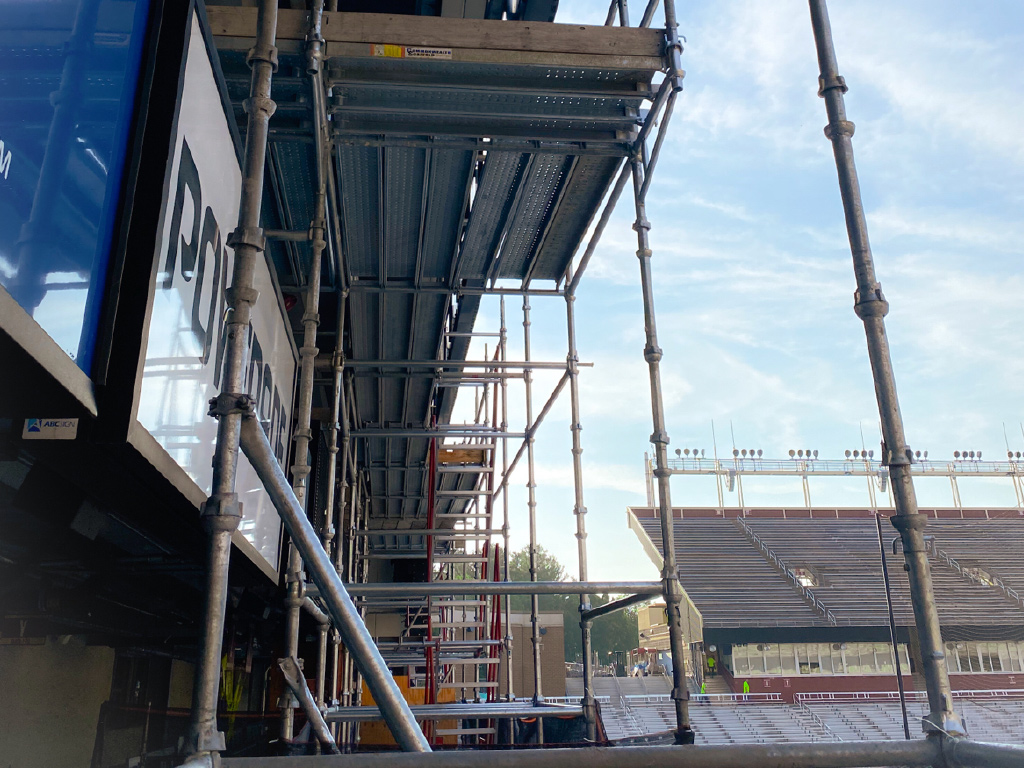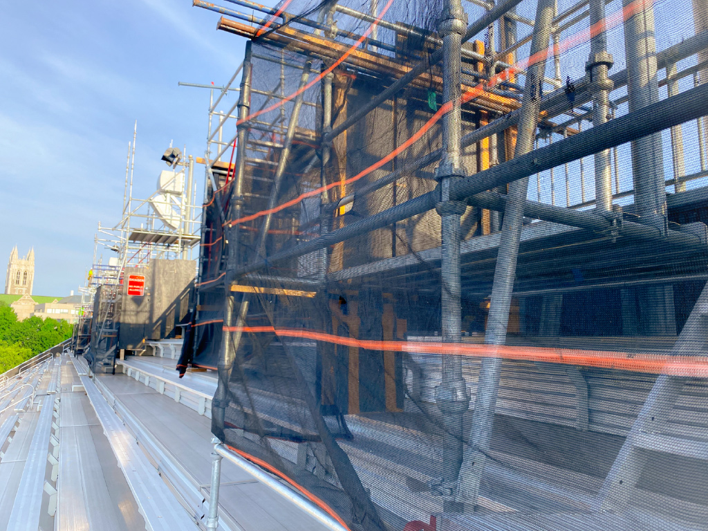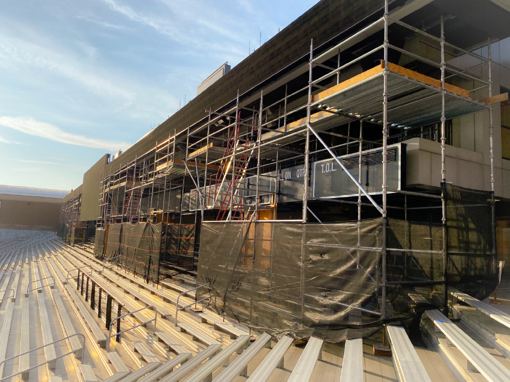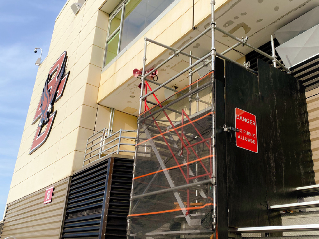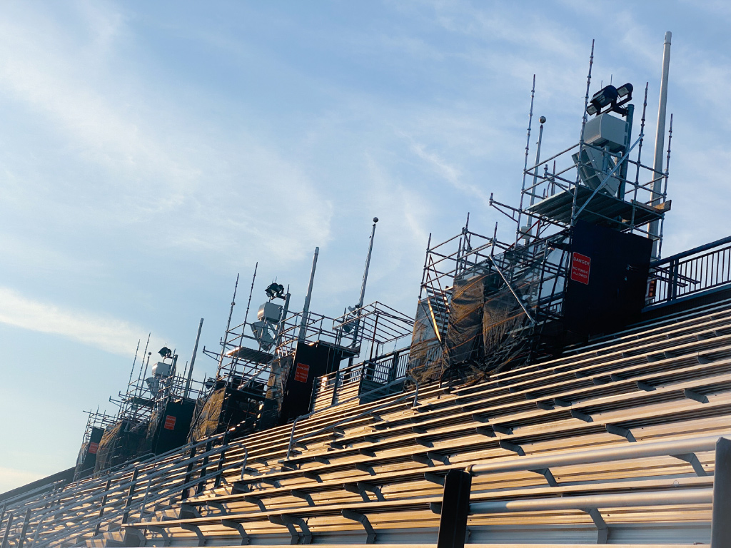 Alumni Stadium, home of Boston College Eagles footbal team, originally seated 26,000 fans. In 1994 the stadium was enlarged, bringing the total total capacity to 44,500. The redesign included the construction of sideline bleachers and two-tiered structures added at each end-zone. Other architectural details were added to the stadium’s facade to blend into the local architecture.
