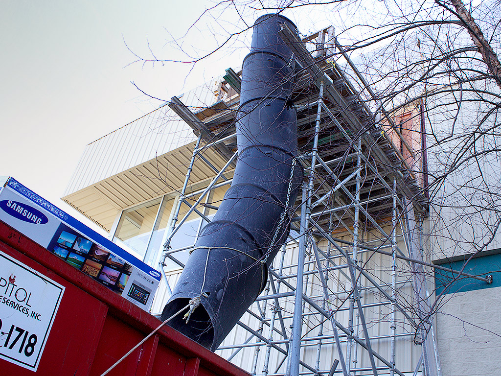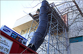 Provide debris chutes with work platform and fall protection for a safe efficient method of handling rubbish.