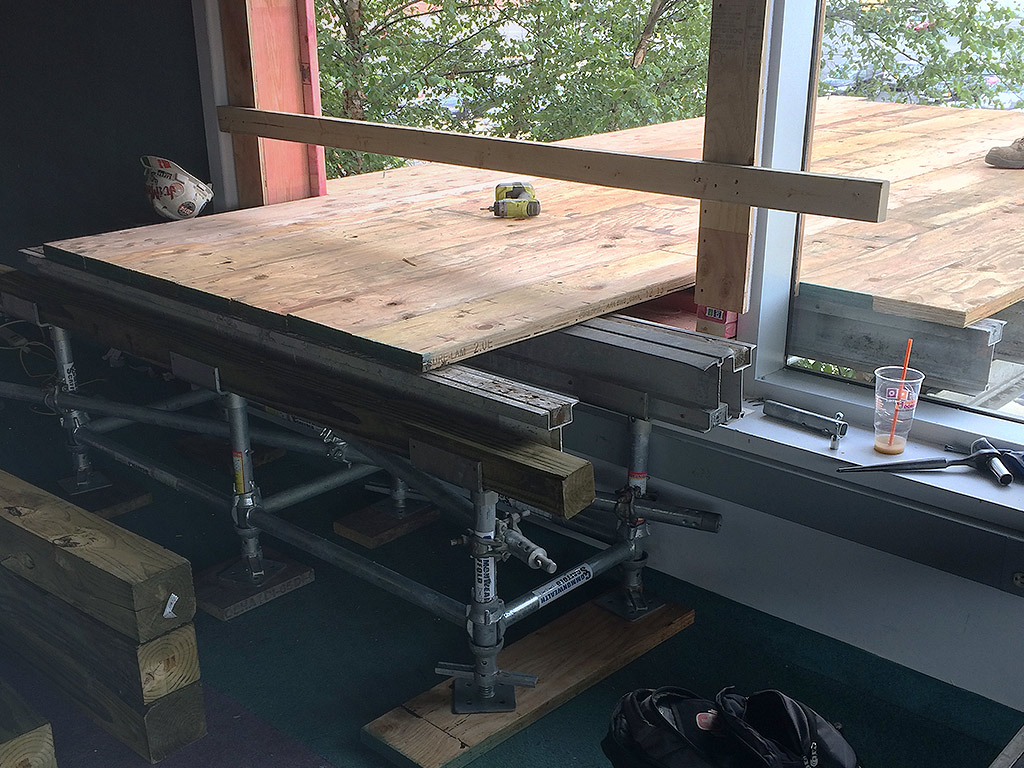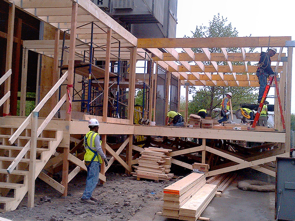 Provide decks, built by carpenters with proper framing to hold designated loads, including railing systems and stairs.